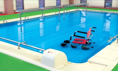 高齢者や身体障害者、自閉症の子どもたちがプールに入ることで、体の自由を得、より積極的になったという事例が多いことから、バリアフリーの観点からのプールづくりが求められています。リハビリテーションの生理的、肉体的苦痛を少しでも軽くしようということから専用のプールやユニットも開発されています。