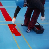 塗料はプール用の専用塗料で塗装します。(コースライン、センターライン、5mライン、クロスライン)